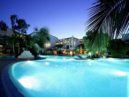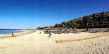 Dista 400 m dalla spiaggia sabbiosa. Dispone di 2 piscine di cui una di acqua di mare attorniata di sabbia fine e una climatizzabile a seconda delle condizioni atmosferiche, entrambe dispongono di una parte separata per bambini. Uso gratuito di ombrelloni e lettini solo alle piscine. Teli mare a pagamento.